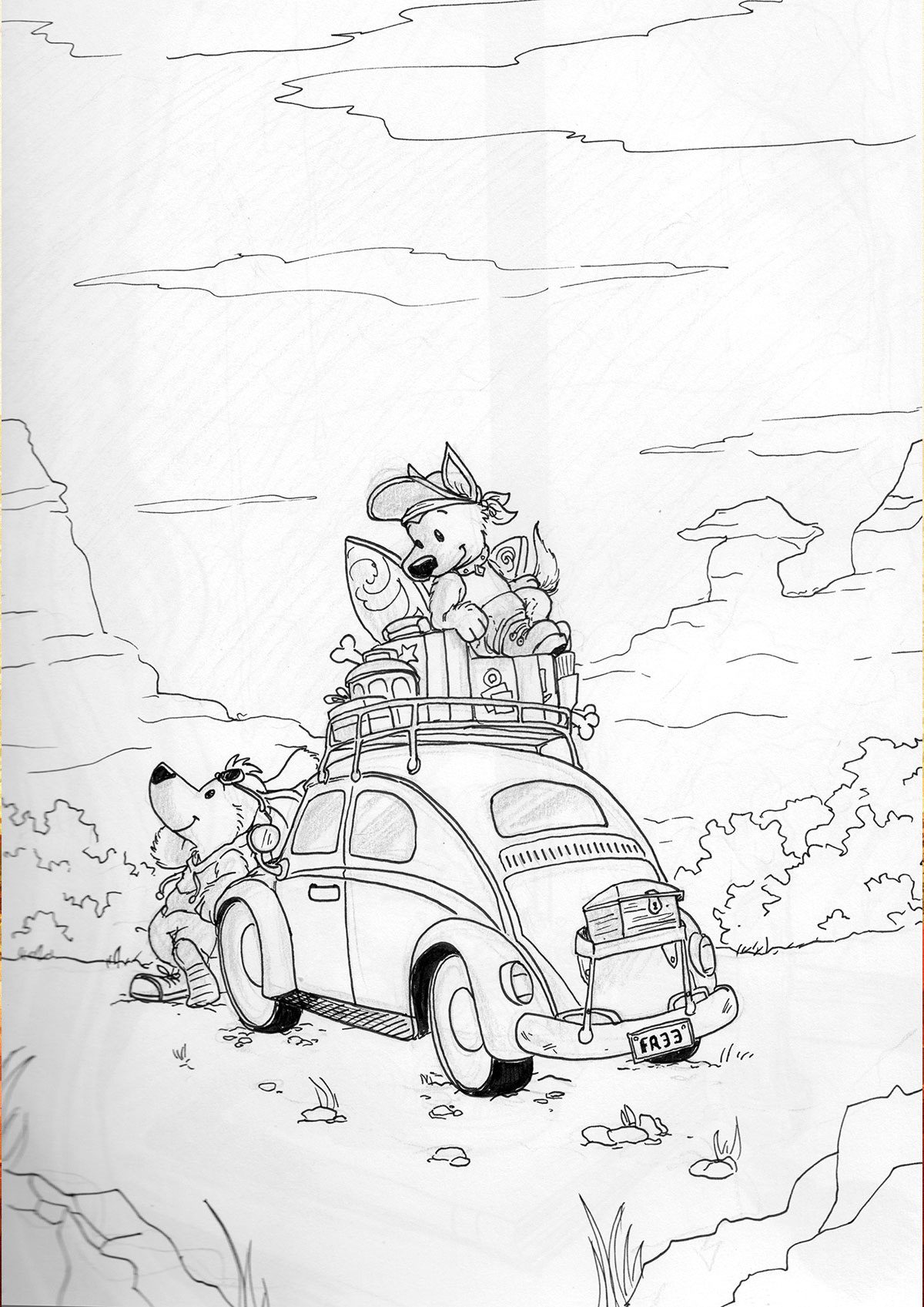 Practicing a new illustration style by combining vector in Adobe Illustrator and digital brushes in Adobe Photoshop. Another personal illustration project.
