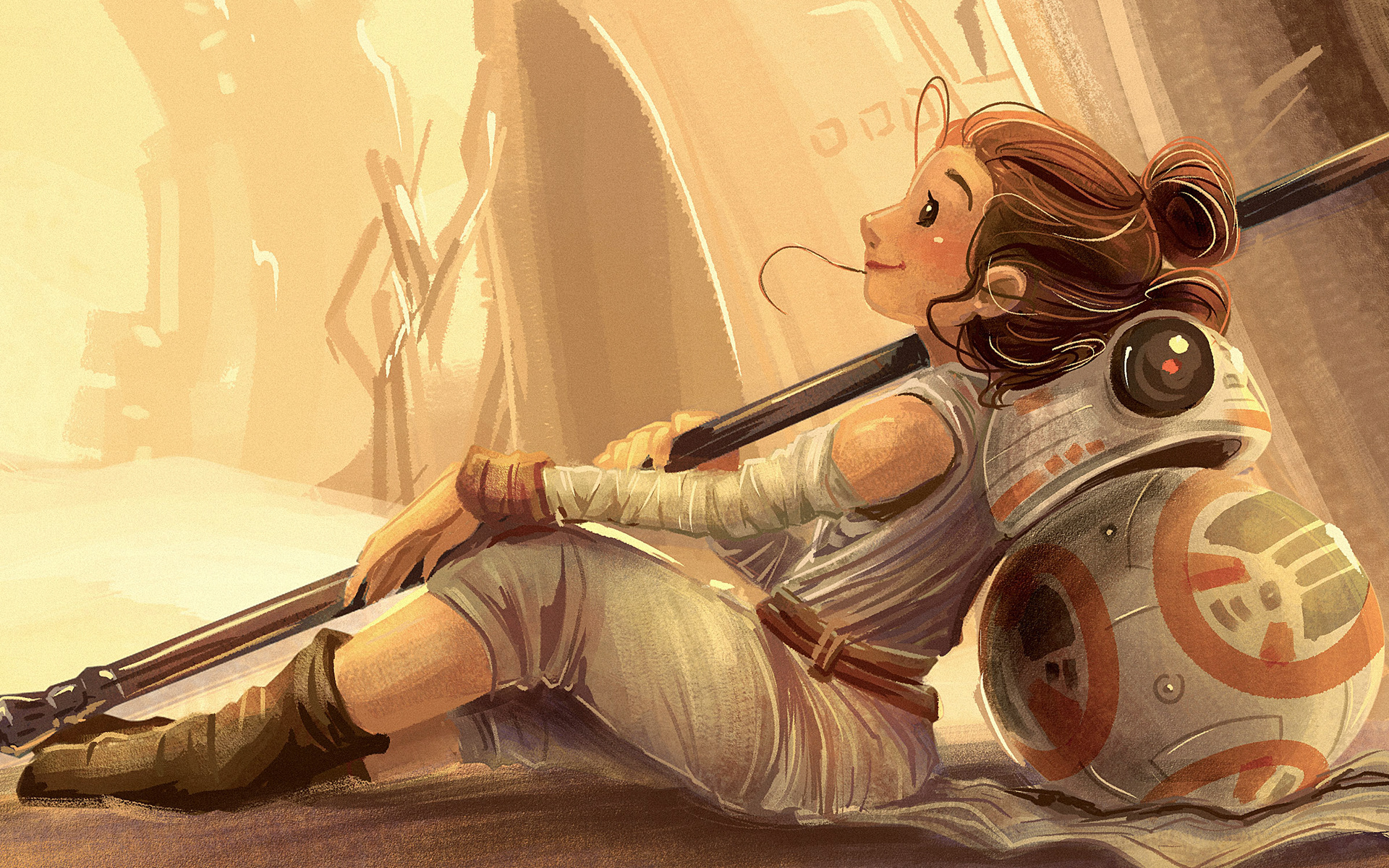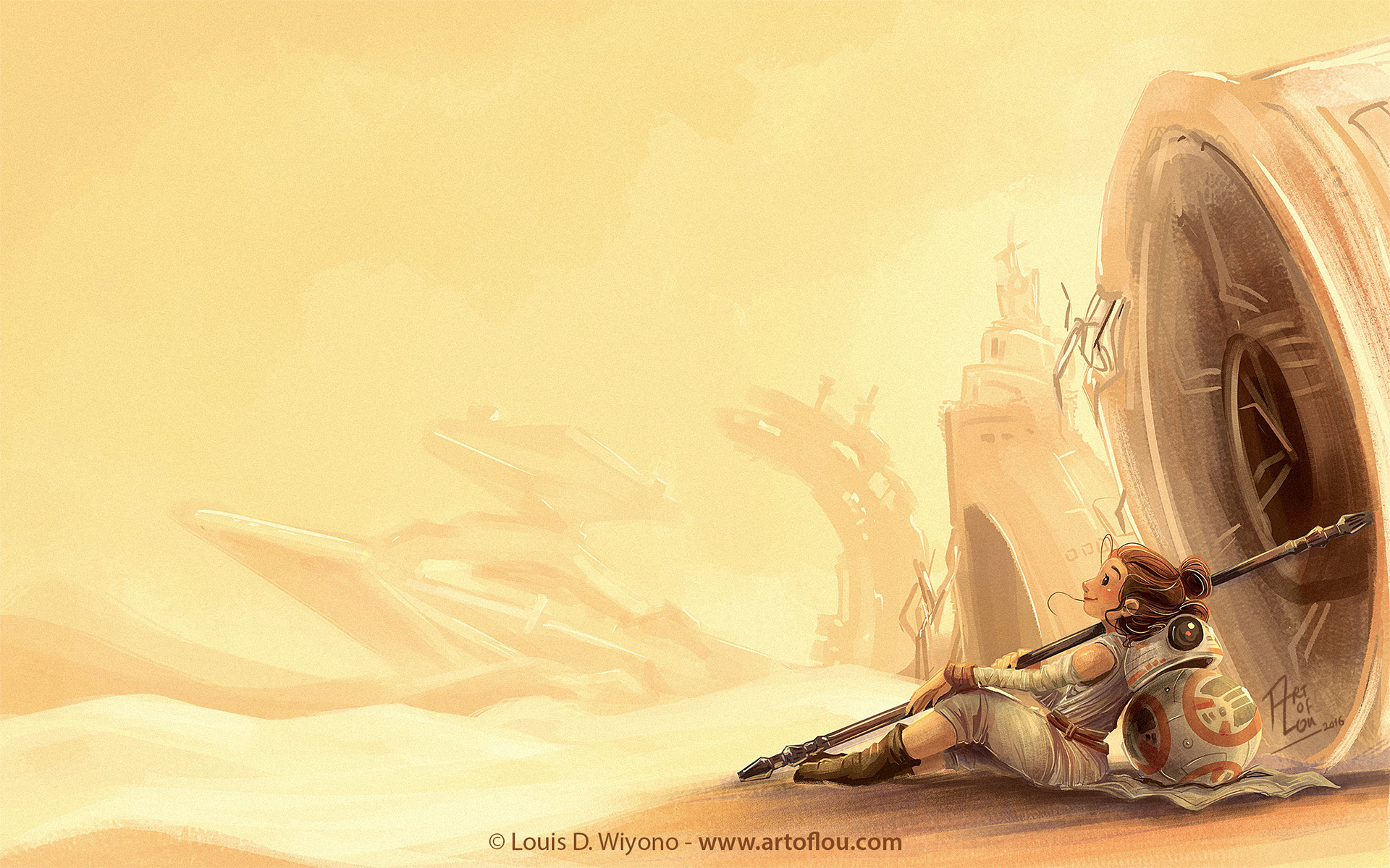 A fan art that I did to join the trend. Obviously, Rey is the most fun character to draw.
